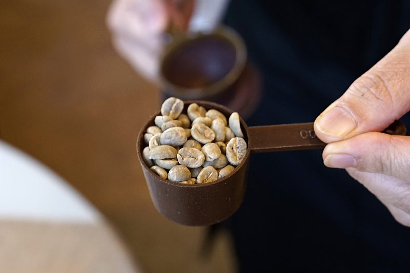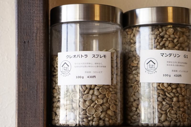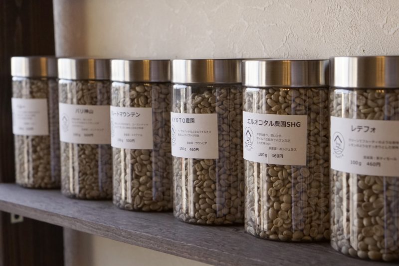 店内には生のコーヒー豆がズラリ。どれも大きさや色が異なり、乾燥した状態なのでかなり日持ちするそうです。自宅で焙煎しているコーヒー好きは、生のコーヒー豆を目当てにお店を訪れるとのこと。