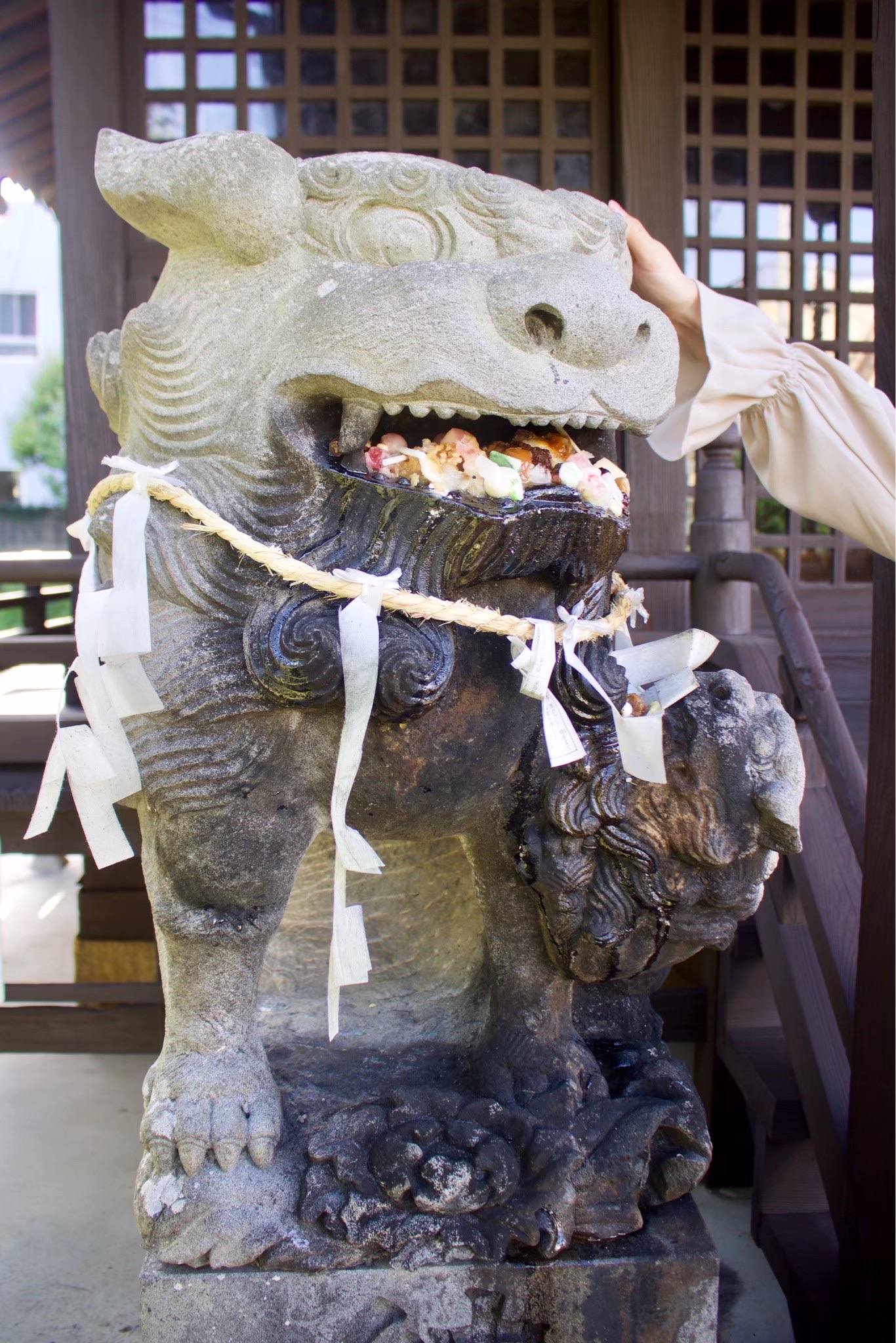 狛犬の口の中には、なんと飴がいっぱい!