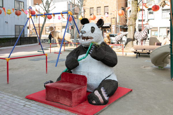 たくさんのオブジェが並ぶ中央公園会場の中でも、近年話題になっているのがパンダのオブジェ。