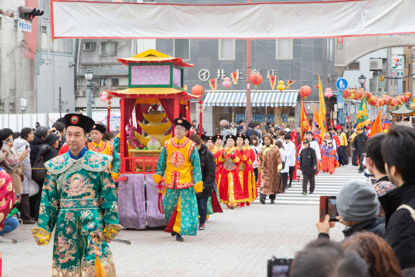 街中を練り歩く「皇帝パレード」と「媽祖行列」は「長崎ランタンフェスティバル」のメインイベントで、毎年多くの人が詰めかけます。