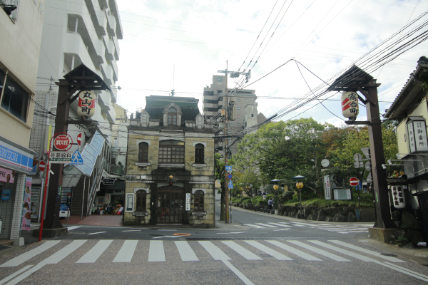 ランタンフェスティバルのメイン会場・新地中華街会場から、グラバー園方面へ。わずか5分強の歩みで到着するのが「長崎居留地」と呼ばれるエリアです。孔子廟会場には、さらに5分ほど歩くとたどり着くので、完全に中間地点。居留地とは、鎖国時代に来航する外国人のために設けられた、外国人居住区のこと。中国色の強いランタンフェスティバルとは、また違ってヨーロッパの街並みが広がります。