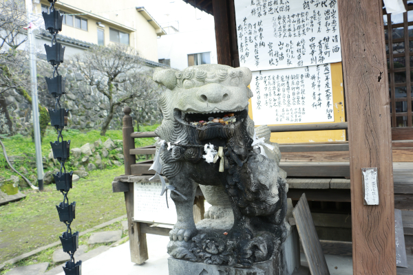 諏訪神社の参道の鳥居の下から拝殿前までに配置されている「男石」、「女石」、「両性合体石」は、順に踏んでいくと良縁の願いが叶うと言われています。また、境内各所に鎮座している、いろんな姿・いろんなご利益のある「狛犬」も探してください。そのほか、君が代の歌詞に出てくる「さざれ石」や、玉園稲荷神社の傍らにある「抱き大楠」など、たくさんのパワースポットが見つかる場所なので、きっと心も体も癒えるひとときとなるはずです。
