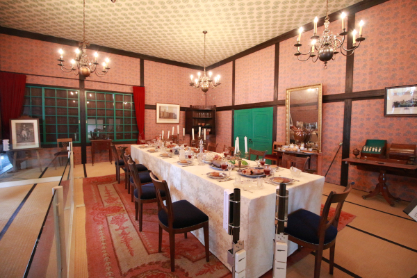 オランダ商館の最高責任者、商館長が居住していた「カピタン部屋」をはじめ、各役職の住居や蔵、料理部屋など、たくさんの建物と資料・説明が用意されています。