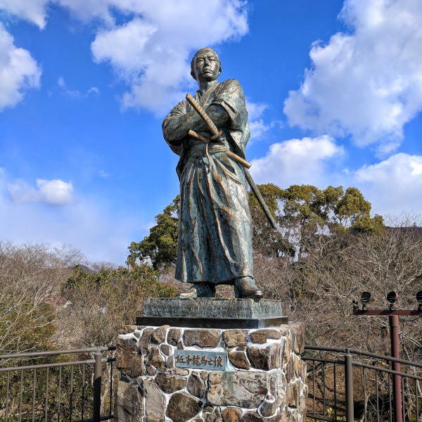 風頭公園内には全身約3.2mの大きな龍馬像がある龍馬ファンの聖地巡礼スポットです!公園に立つ坂本龍馬像は、高台から長崎市のまち並みを見下ろしています。