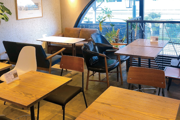 2階のカフェ〈フィーヌ〉は、販売しているケーキやトラジャブレンドのコーヒーも楽しめる、立ち寄りやすいスポットです。