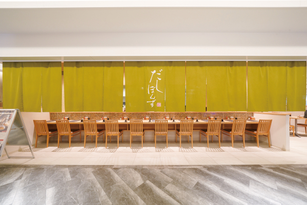 長崎駅構内にある「長崎街道かもめ市場」、市内最大級のお土産ゾーンや、地酒と料理が楽しめる「かもめ横丁」、そして地元でも大人気のご当地レストランが集結するこちらに〈だしぼんず〉の姉妹店があります。ダシが決め手の五島うどんで人気の名店。うどんなので、帰りの新幹線など時間が気になる人もサッと食べられます。