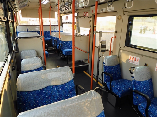 明るく開放的な車内には座席がたくさん!多くの方が長崎にお越しになり、観光地への移動手段は混雑しておりますが、このバスは座れる確率が高く、これから知られる穴場かもしれません。車内には観光地のポスターが飾られており、到着する前から期待が始まります。
