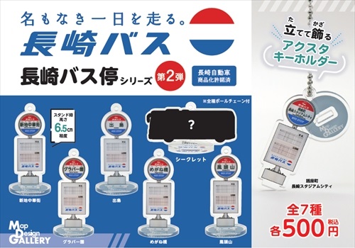 「Map Design GALLERY 長崎空港」、「Map Design GALLERY 長崎スタジアムシティ」には、長崎の観光地をモチーフにしたバス停のアクスタ(1回500円)のカプセルトイがあります。