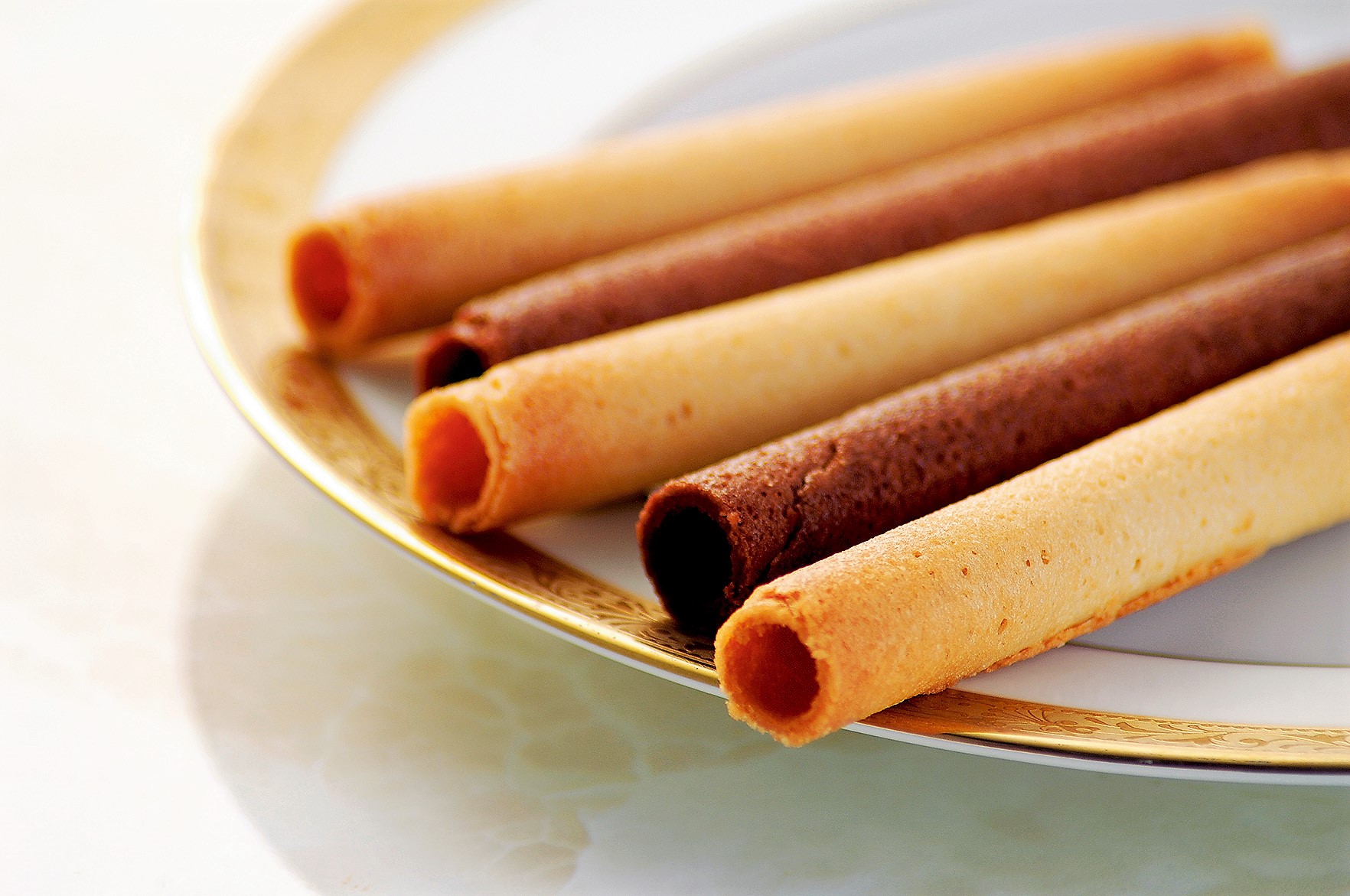 1894(明治27)年創業の老舗和洋菓子店「梅月堂」の「南蛮おるごおる」は、50年以上愛されるロングセラー。昭和30年代、田川を始めとする長崎の文化人たちが喫茶室に集っていた縁もあり、そのパッケージには当初から「西洋骨董店にて」が使われています。