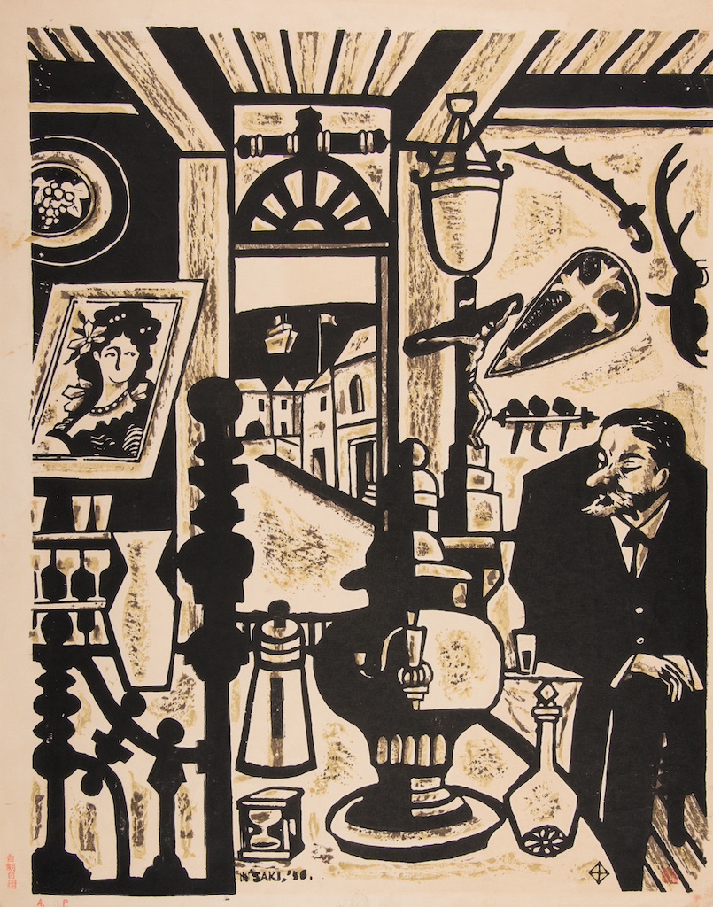 「西洋骨董店にて」1956(昭和31)年 ※原画は展示されておりません。商品パッケージに使用されております。