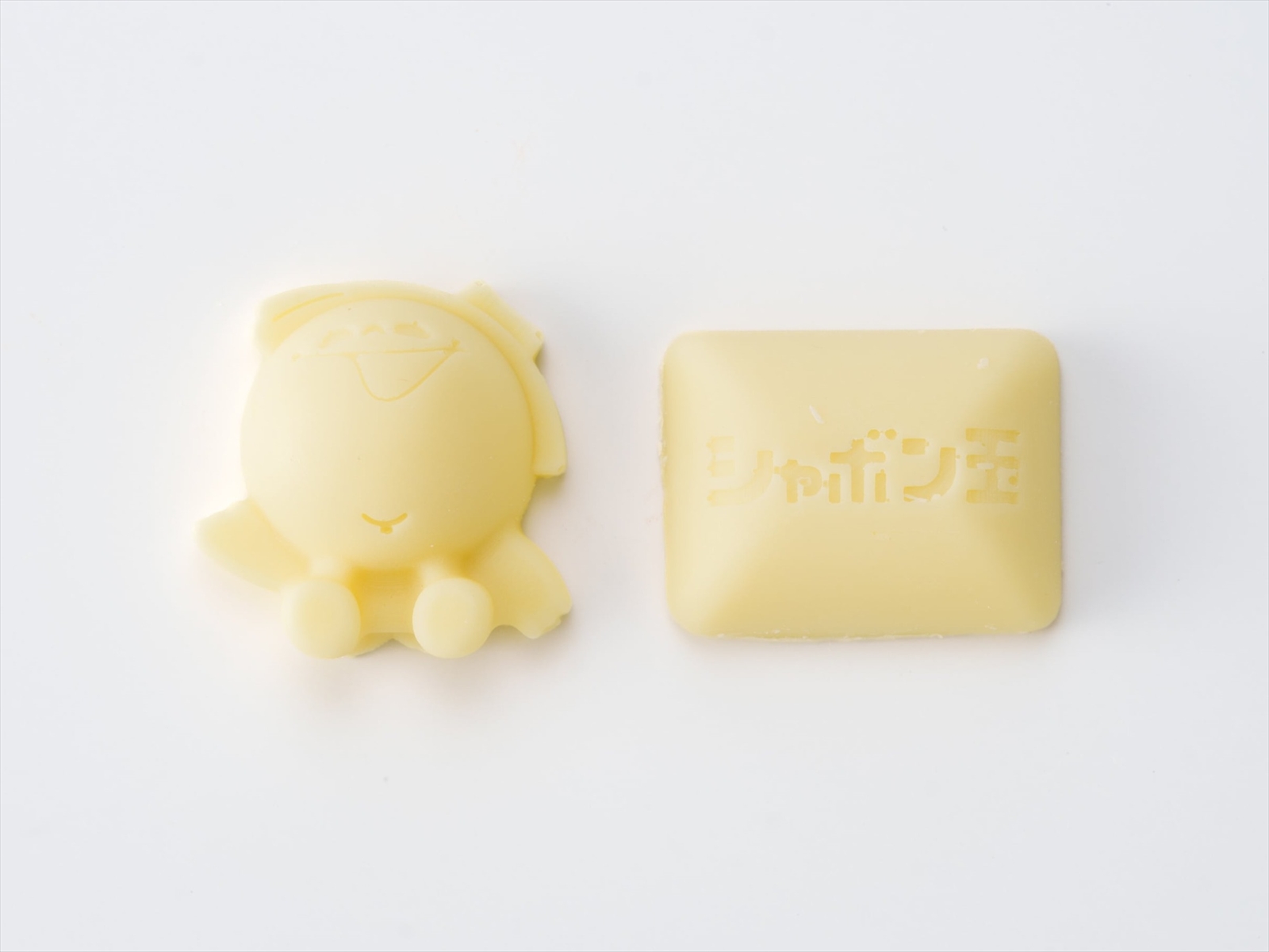 可愛いキャラクターのシャボンちゃん型とシャボン玉石けん型のホワイトチョコです。