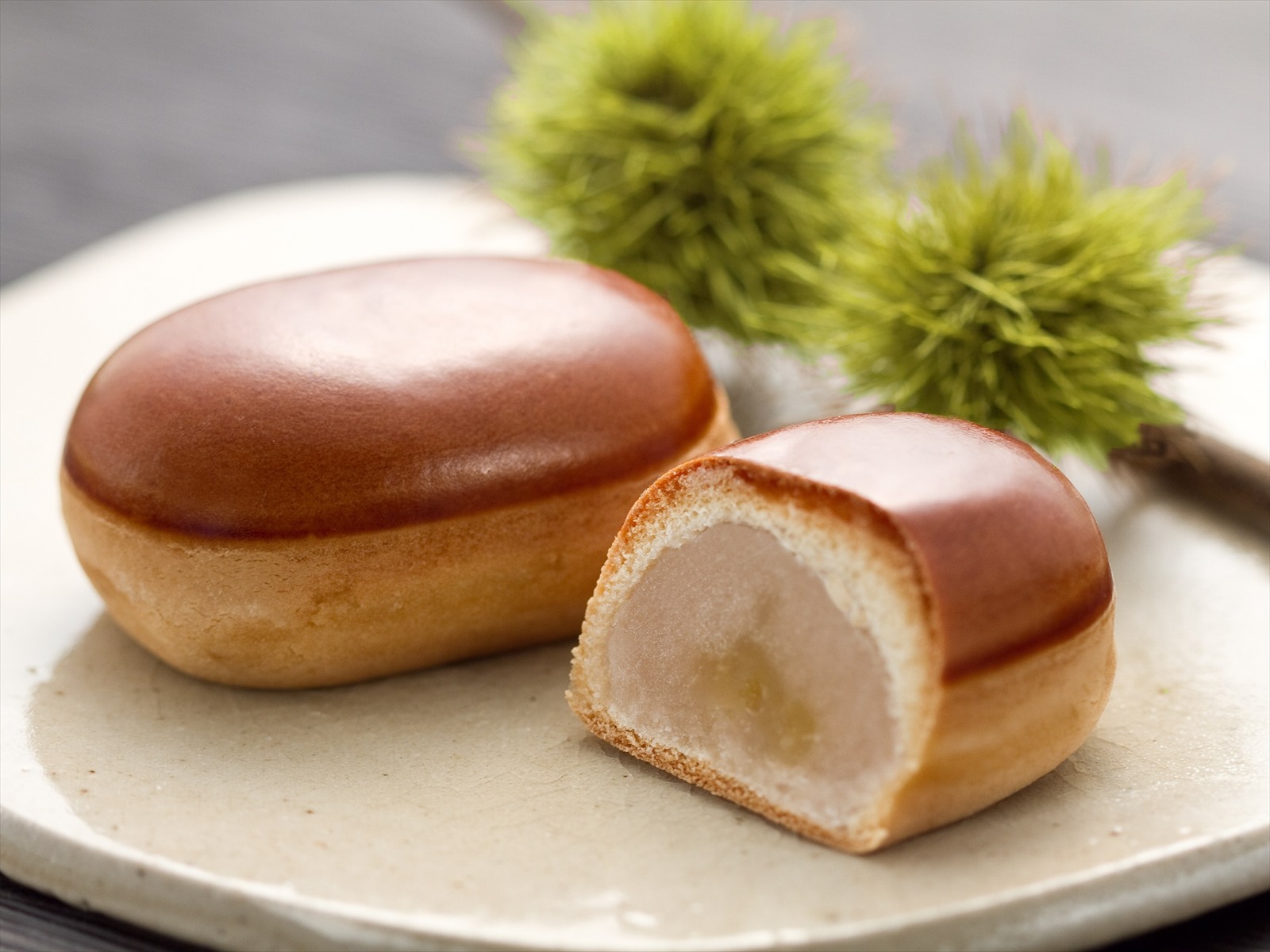 明治28年創業、北九州土産と言えば真っ先に浮かぶ、地元では知らない人がいない老舗和菓子店。「湖月堂の栗饅頭」は艶やかに焼き上げた小判形の生地の中に、刻んだ栗の甘露煮を包み込んだしっとりと炊き上げた自家製の白餡が入っています。誰もが小さい頃から親しみのある代表銘菓です。1つ162円