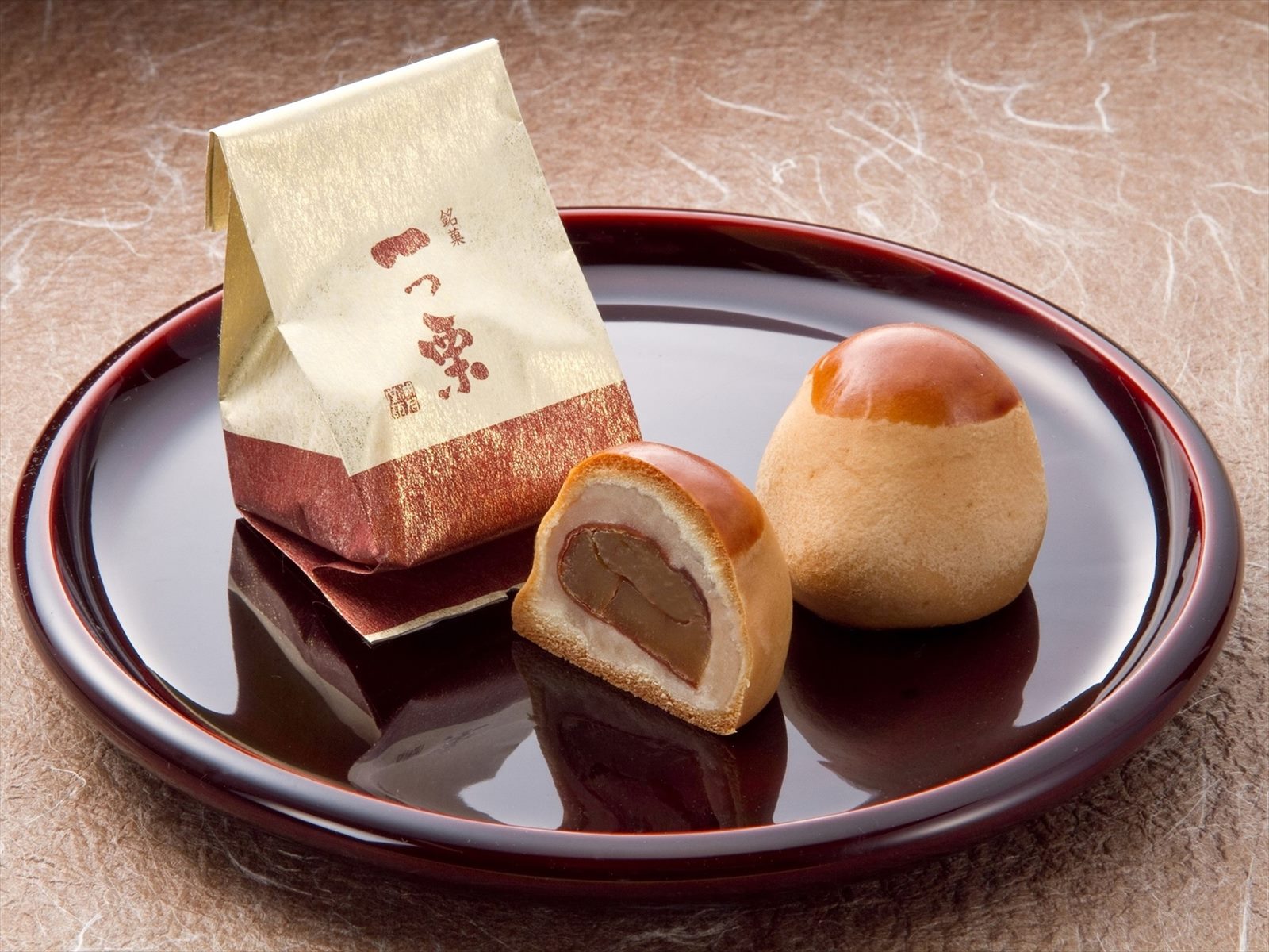渋皮付きの栗を丸ごと包んだ贅沢な「一つ栗」。いただいたり家にあったりすると大喜びの永遠の憧れの逸品です。1つ324円