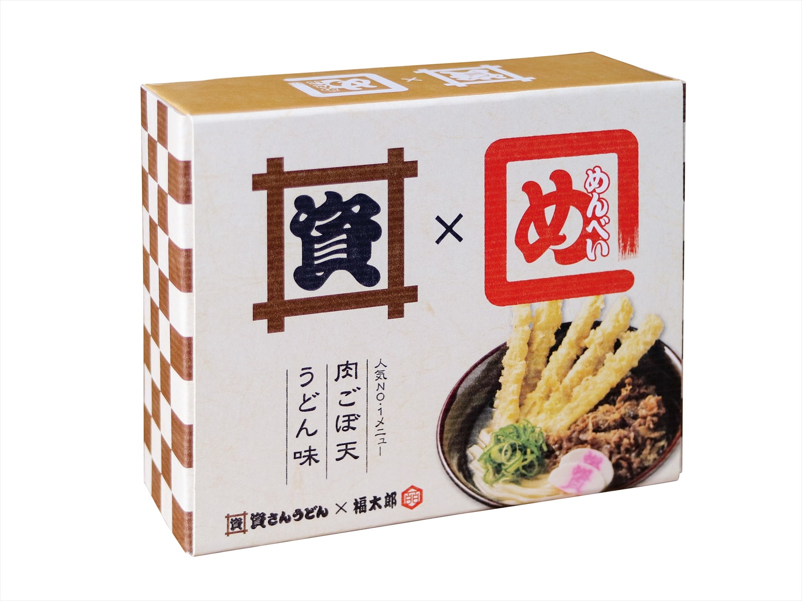 福太郎自慢の明太子にイカやタコといった海鮮のおいしさが凝縮しためんべいと、資さんうどんの黄金の出汁、旨味あふれる肉、カラリと揚がったごぼ天を思わせる風味が見事にマッチ。