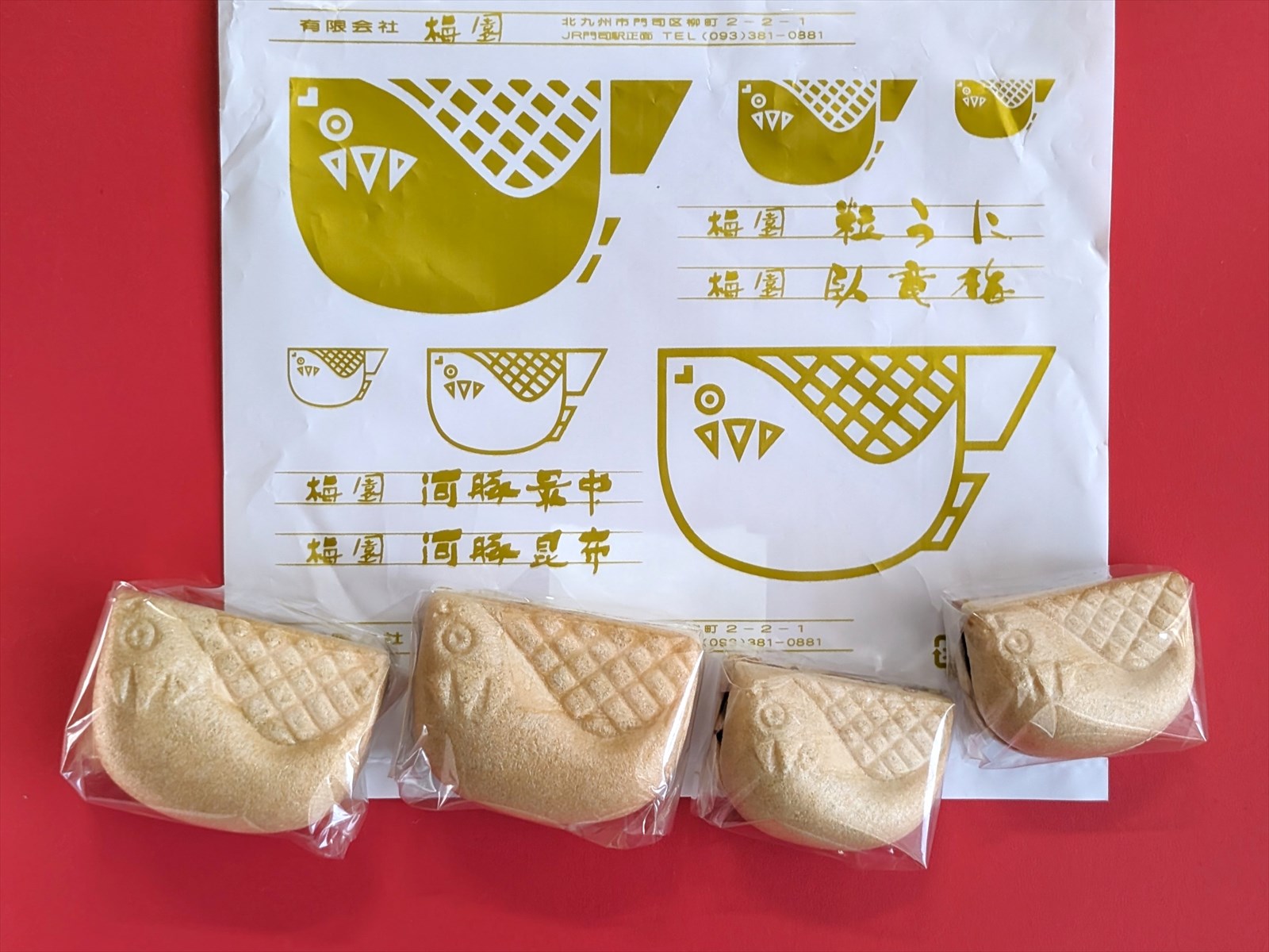 昭和22年に門司で誕生し、最中をはじめ雲丹や明太子、佃煮昆布などの製造販売を行う「梅園」。関門の名産ふぐをかたどった「河豚最中」は70年以上の歴史を誇ります。