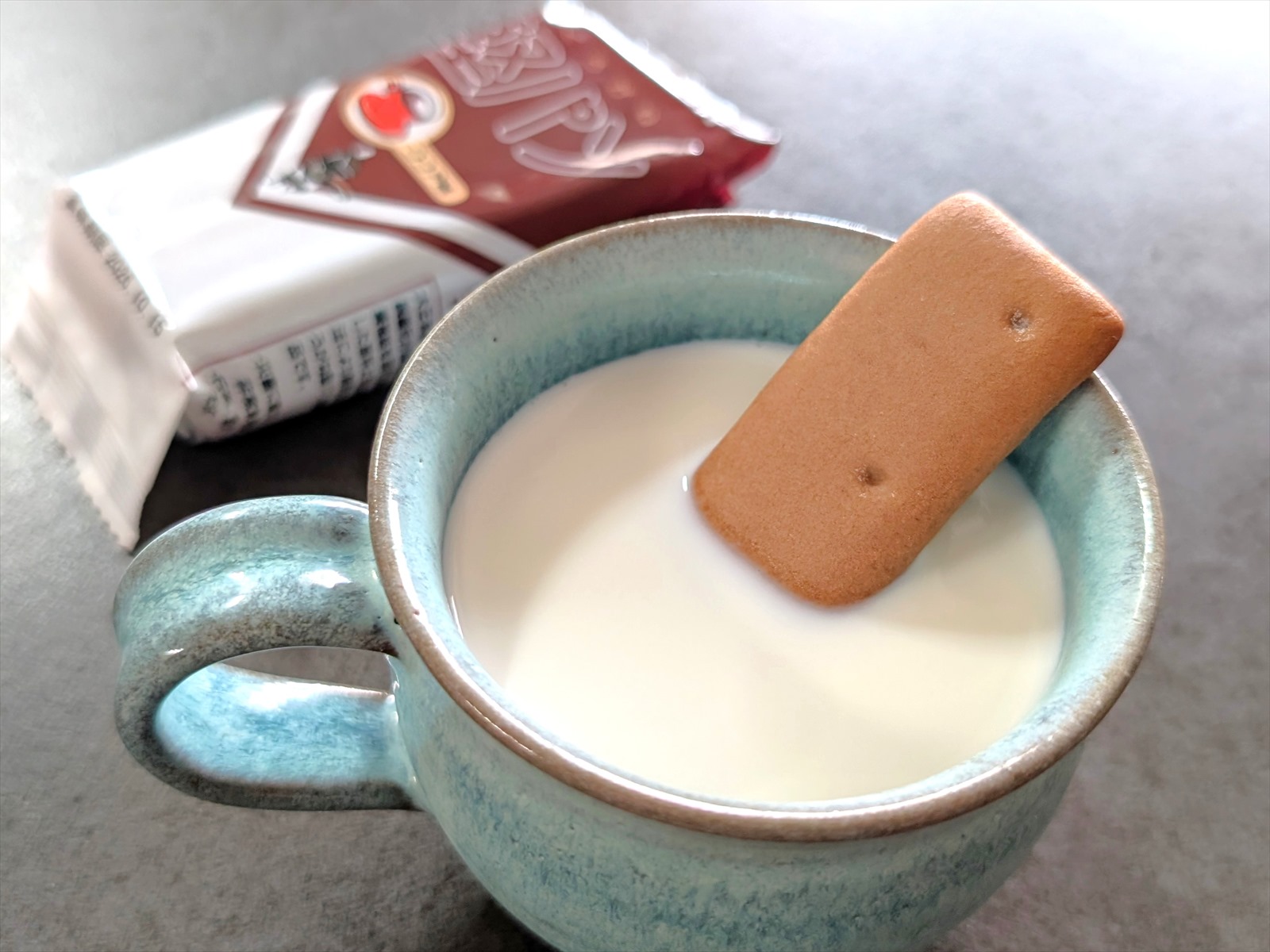 牛乳に浸し、やわらかくして食べるのが地元民の定番。コーヒーや紅茶でもOK。