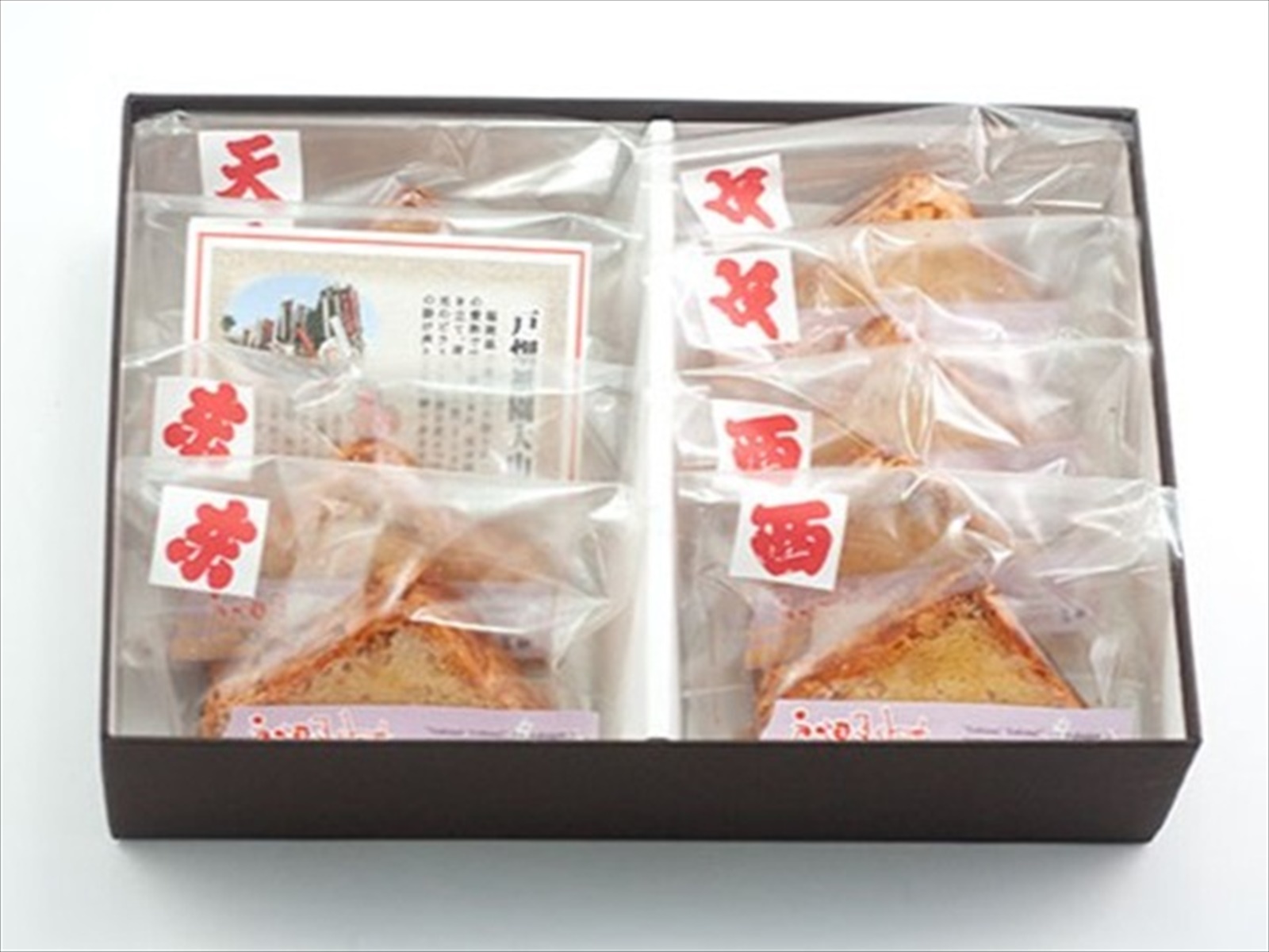 地域に根ざした洋菓子店「ミロ」が、地元最大のお祭り「戸畑祇園大山笠」のピラミッド型をモチーフにして考案した、先代から続く伝統の焼き菓子です。