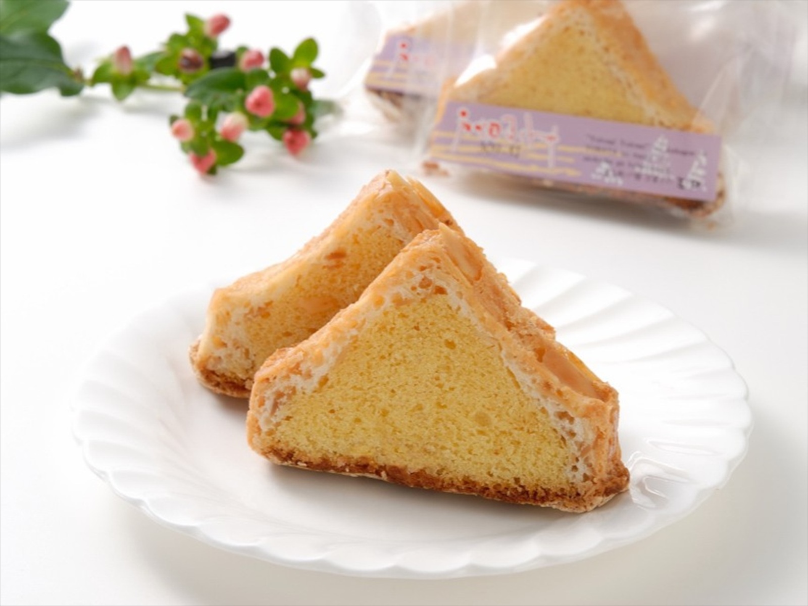 オレンジ風味のパウンドケーキをアーモンドの入ったメレンゲで覆い、和のイメージのお祭りを洋菓子で表現して、どちらの良さも引き出しています。ふんわりした生地は香りがよく、アーモンドの風味も相まって豊かで華やかなおいしさを堪能できます。1つ250円