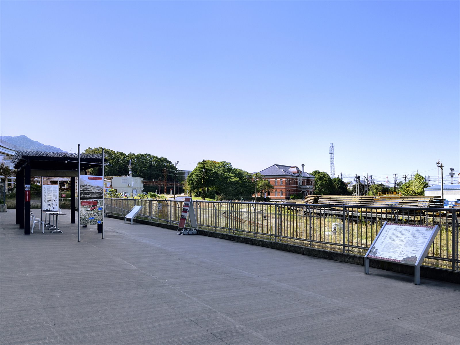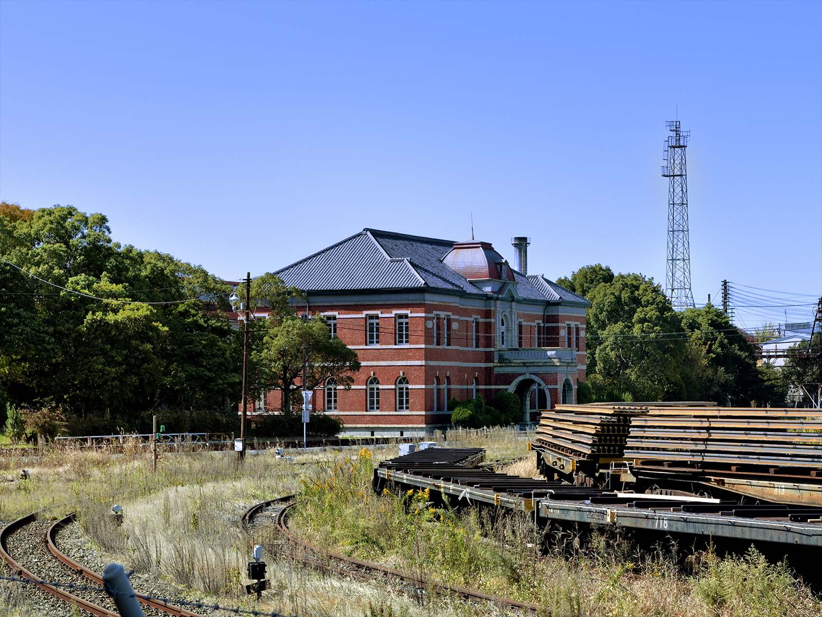 官営八幡製鐵所の関連施設は、製鉄所の構内にあることから一般公開されていませんが、構成資産のひとつである旧本事務所(1899年竣工)を眺望できるスペースが整備されています。