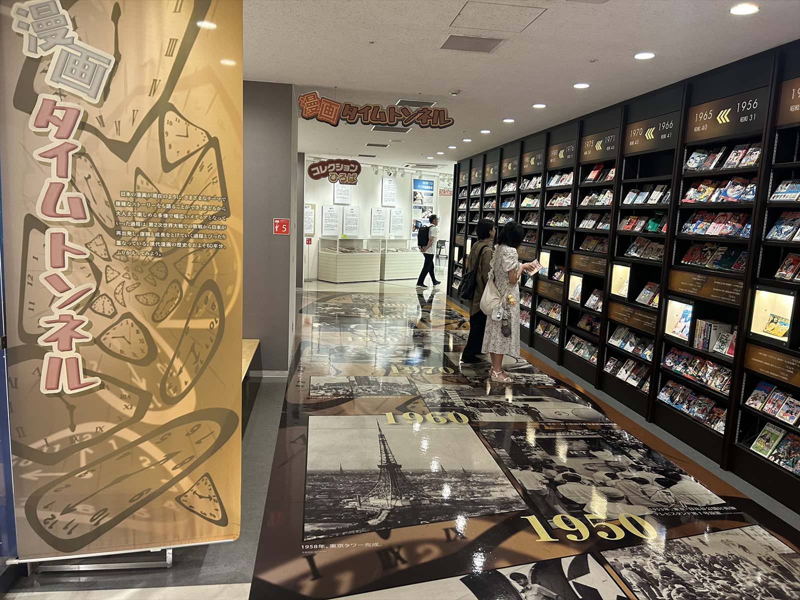 館内の常設展示は、「見る」「読む」「描く」という3つのテーマで構成。展示コーナーには、初代名誉館長でもある漫画家・松本零士氏の生い立ちや業績を紹介したコーナーや、漫画ができるまでの過程がわかるコーナー、漫画の歴史を戦後から現代まで紹介する「漫画タイムトンネル」があります。