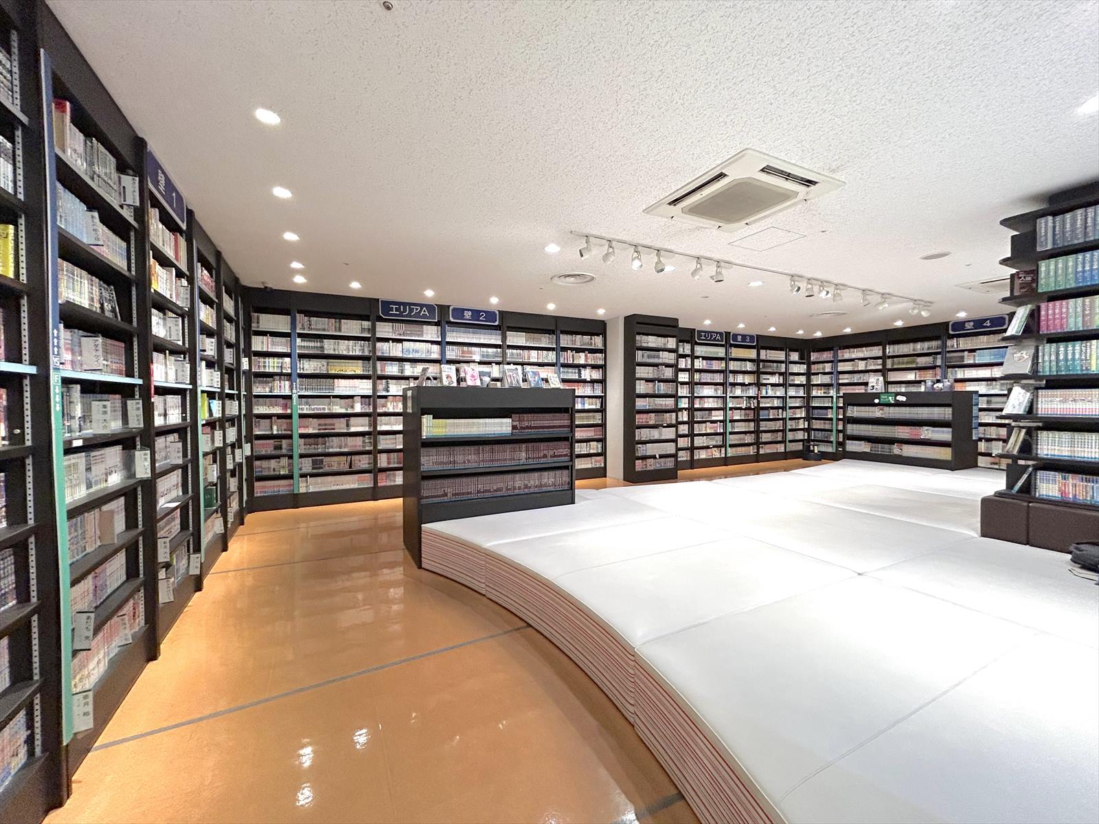 漫画トンネルの先は、明るく開放的な「漫画コミック閲覧コーナー」が。約7万冊の漫画単行本が読み放題という幸せな場所です。