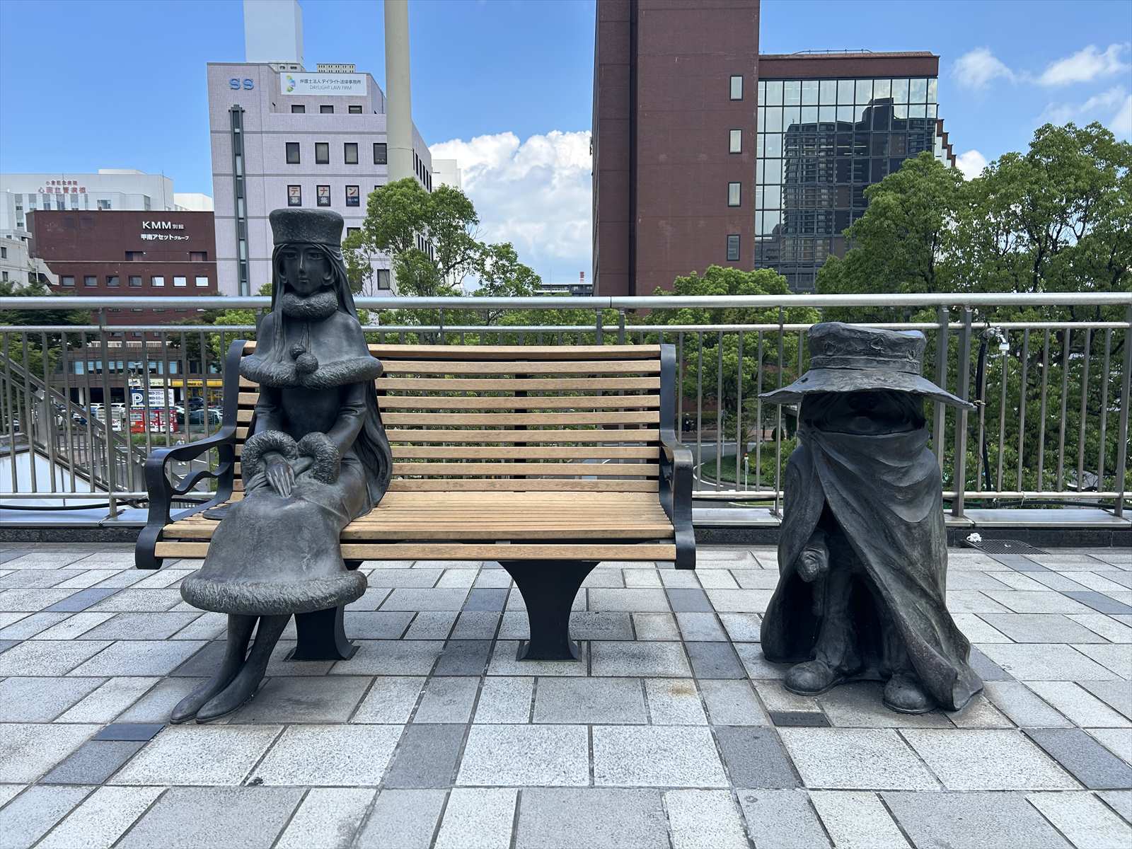 「漫画の街」として知られる北九州市には、先述の「北九州市漫画ミュージアム」以外にも、漫画やアニメと気軽に触れ合える場所が多々あります。この銅像は、小倉駅の新幹線口から出てすぐの空中回廊に設置されています。