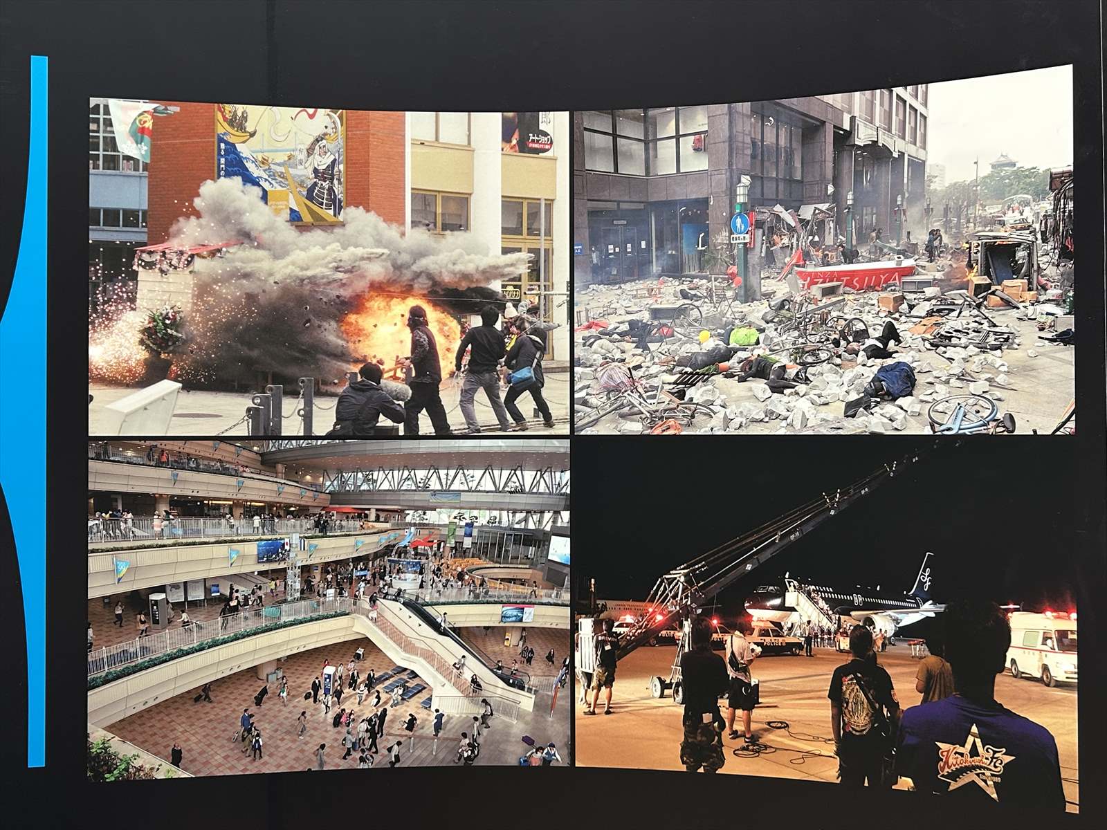 パネルを見ると、これまで百貨店、空港、競馬場などさまざまな場所で大規模なロケをおこなってきたことがわかります。