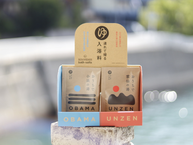プレゼントの入浴剤は、雲仙温泉・小浜温泉の2種類です。雲仙温泉観光案内所では「雲仙の湯」を、小浜温泉観光案内所では「小浜の湯」をお渡しいたします。おうちに帰ってからも温泉気分を楽しめますのでおススメです♪