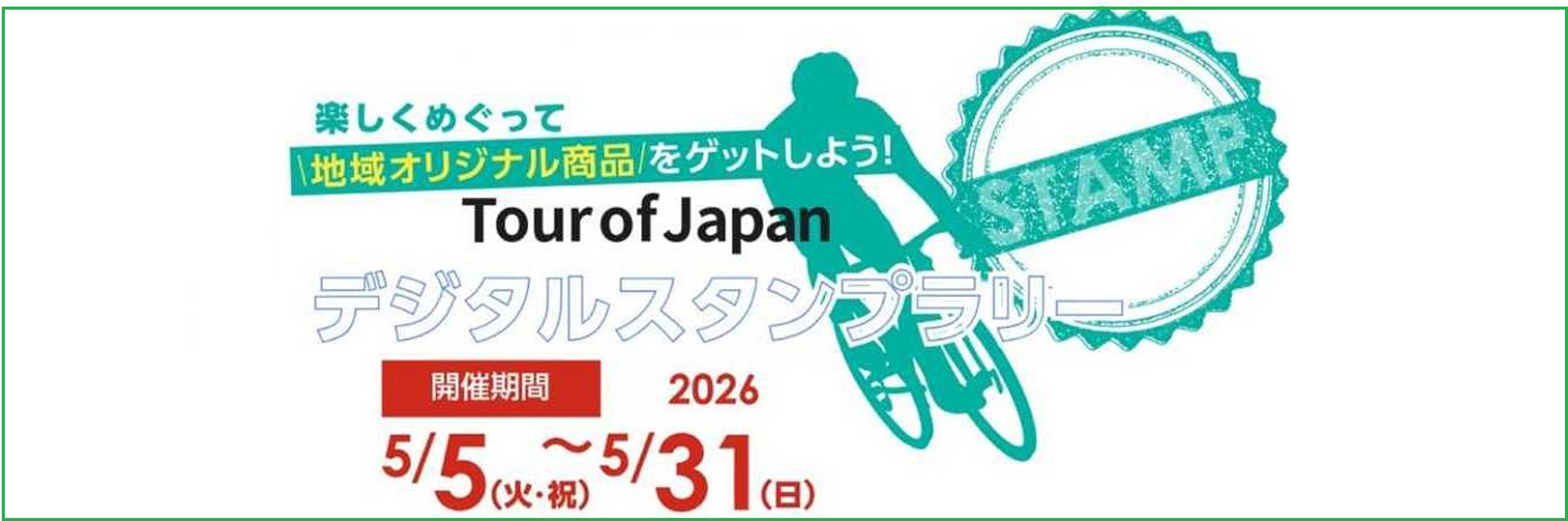 5月5日(火・祝)に東京・明治神宮外苑 聖徳記念絵画館前通りで行われる「サイクルドリームフェスタ2026」を皮切りに、大会終了日5/31までの約1か月間のスタンプラリーです。