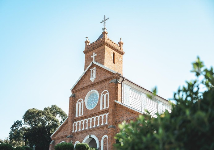 島のほぼ中央に位置する「黒島天主堂」。1902年にフランス人のマルマン神父の指導のもと、島の信者たちが全員建設に参加して建てられました。