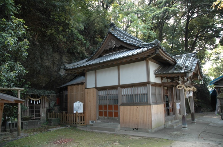 創建は不明ですが、佐世保市内でも古くから鎮座していたといわれている神社の一つです。戦国時代から松浦家が厚く信仰し、初代平戸藩主の松浦鎮信が朝鮮出兵からの凱旋を祝って奉納したご神木や鳥居も残されています。深い自然洞窟をご神体としており、穴妙見または巌屋宮として平戸八景の一つに数えられています。