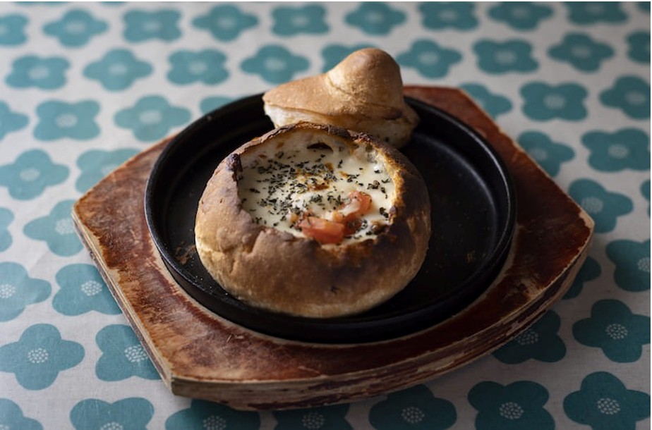 令和元年、現オーナーが引き継いだ“新生”六曜館は、気軽に音楽が楽しめる魅惑の空間に。日曜の昼に開催されるジャズやブルースの生ライブはチャージ無料(チップ制)。心地よい音楽のお供は、タマネギをじっくり炒めて甘みを引き出した焼きカレーを。パンをくり抜いた焼きカレーポットも。